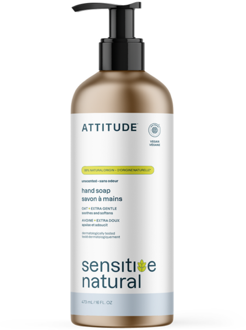 ATTITUDE® sensitive natural handtvål har utvecklats speciellt för skonsam rengöring av känsliga händer. Den veganska formulan är helt doftfri för att undvika irritation. Det havreextrakt som tvålen innehåller är känt för sina milda egenskaper och bidrar till att förbättra torr hud. Denna dermatologiskt testade tvål erbjuder effektiv vård för alla som letar efter en luktfri och miljömedveten lösning för sin dagliga handhygien.