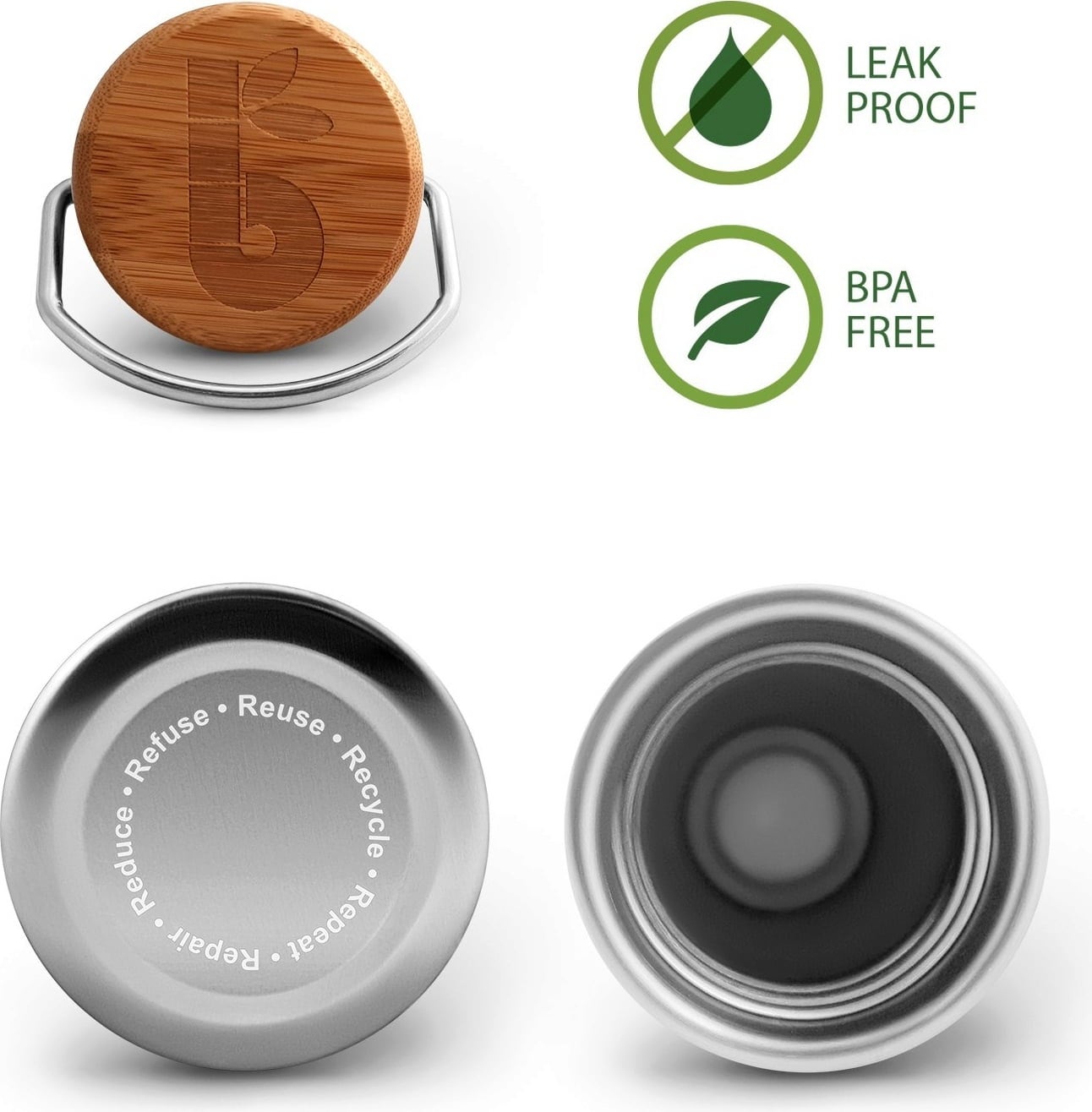 Denna läckagesäkra flaska är den perfekta följeslagaren i skolan, på jobbet, vandring eller andra äventyr. Dess enkla, moderna design övertygar nästan alla smaker. Flaskan av rostfritt stål avrundas med ett lock av bambu. Flaskan innehåller inte BPA eller andra skadliga kemikalier. Efter användning rengörs flaskan helt enkelt med en flaskborste.