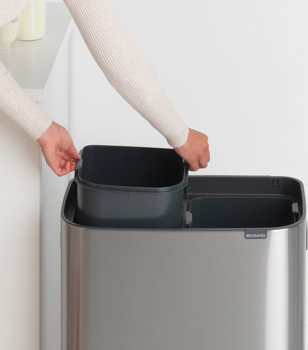 Med Bo Touch Bin har du en vacker avfallslösning för ditt hem! Den vackert utformade soptunnan har gott om kapacitet med 2 x 30 liter. Den passar perfekt på väggen och i hörnen och är särskilt stabil. Med den unika soft-touch-stängningen kan den öppnas och stängas med en enda beröring.