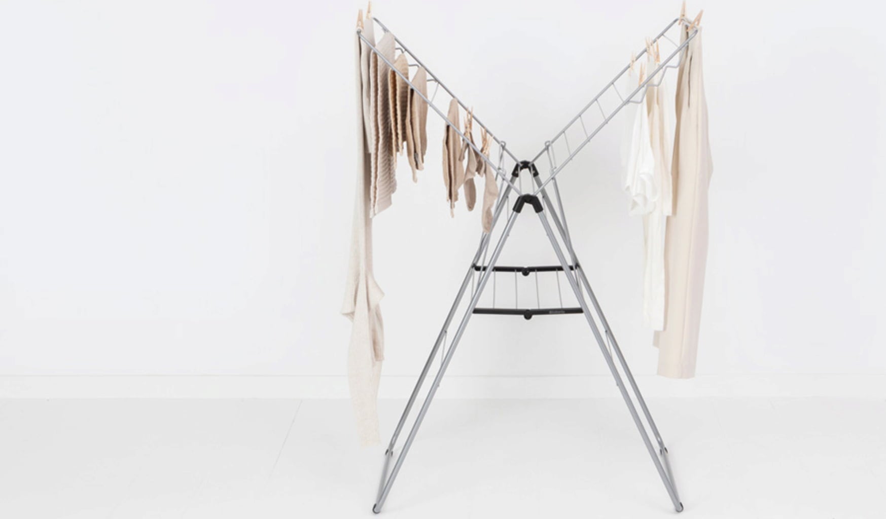 Särskilt praktiskt: tack vare den triangulärt utformade ramen kan vingarna också fällas ut individuellt eller användas på olika höjder utan att klädhästen tippar över.