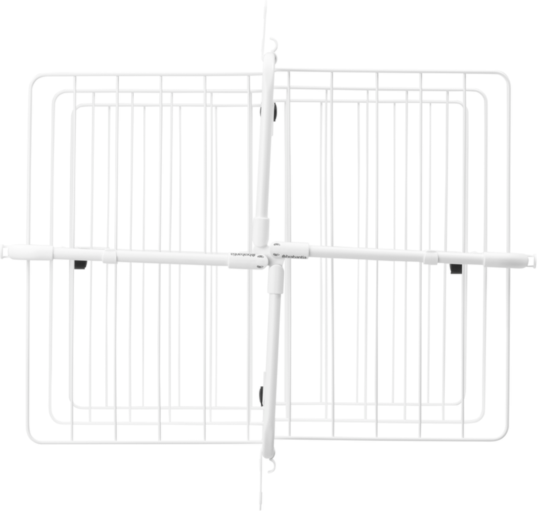 Den tidlösa, neutrala designen gör den särskilt mångsidig - den harmonierar med många olika inredningsstilar och färger. Praktiska hörnkrokar och klämhållare ger extra utrymme, och ramen kan fällas ihop för förvaring.