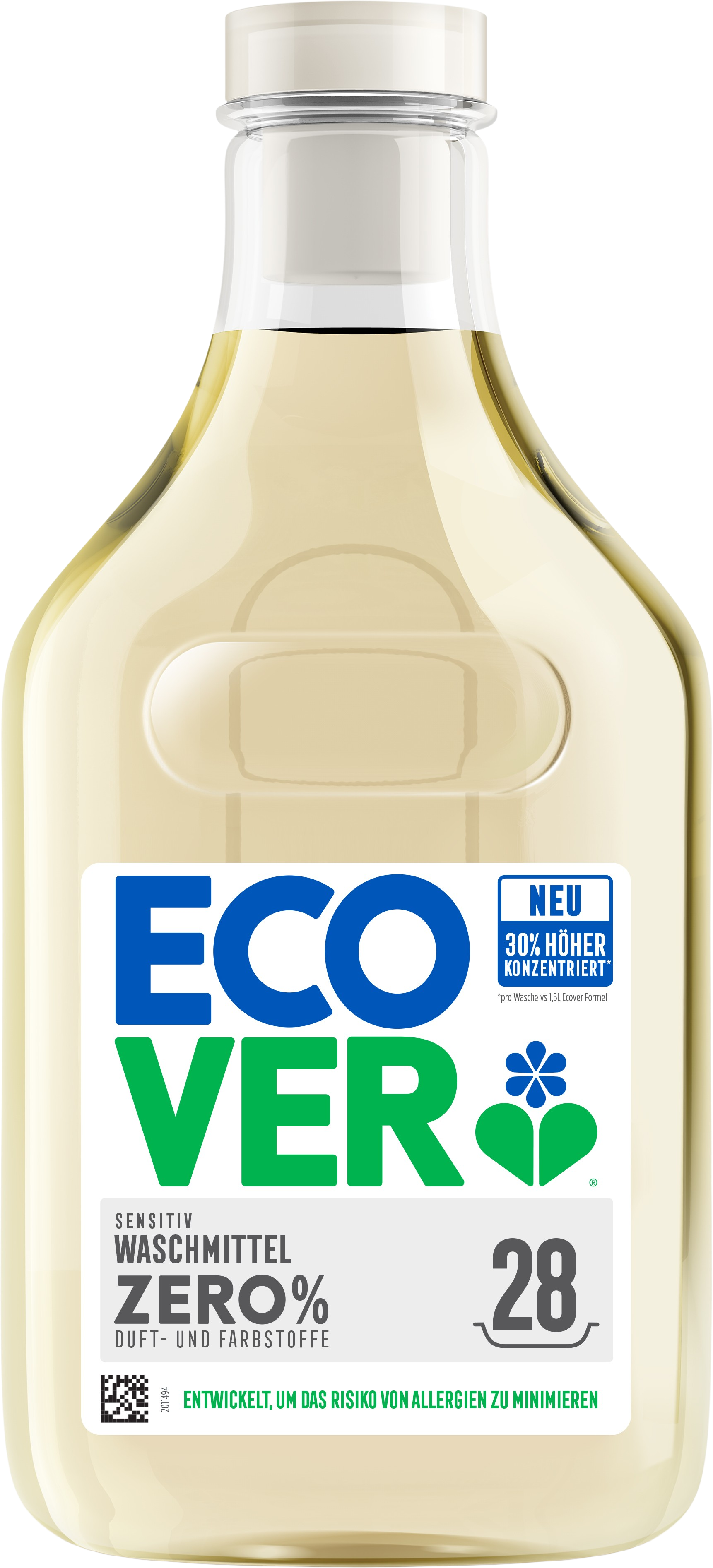 Det flytande tvättmedlet ZERO frånEcover är mycket lämpligt för vit och färgbeständig kulörtvätt och tar bort fläckar från en tvättemperatur på 30 °C.