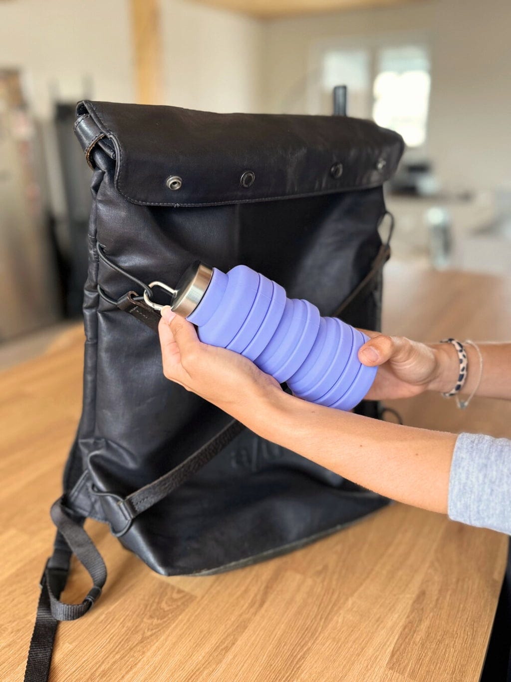Den här hopfällbara dricksflaskan i silikon är den perfekta följeslagaren när du är på språng, oavsett om du reser eller sportar. Den är superpraktisk och kompakt och kan minskas till cirka en tredjedel av sin volym och har dessutom en karbinhake så att du enkelt kan fästa den på ryggsäcken. Flaskan är läckagesäker, även med kolsyrade drycker, och tål maskindisk. Den perfekta lösningen för alla som älskar att resa och är engagerade i hållbarhetsfrågor.