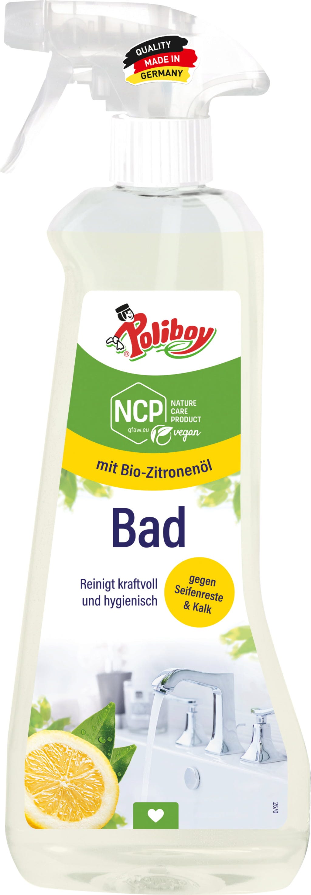 Baserat på en vegansk formulering av naturliga ingredienser använder rengöringsmedlet mjölksyra, bioalkohol och citronsyra för att säkerställa hygieniskt rena våtrum och en fräsch citrusdoft erhållen från eteriska oljor – för ett hygieniskt rent badrum.