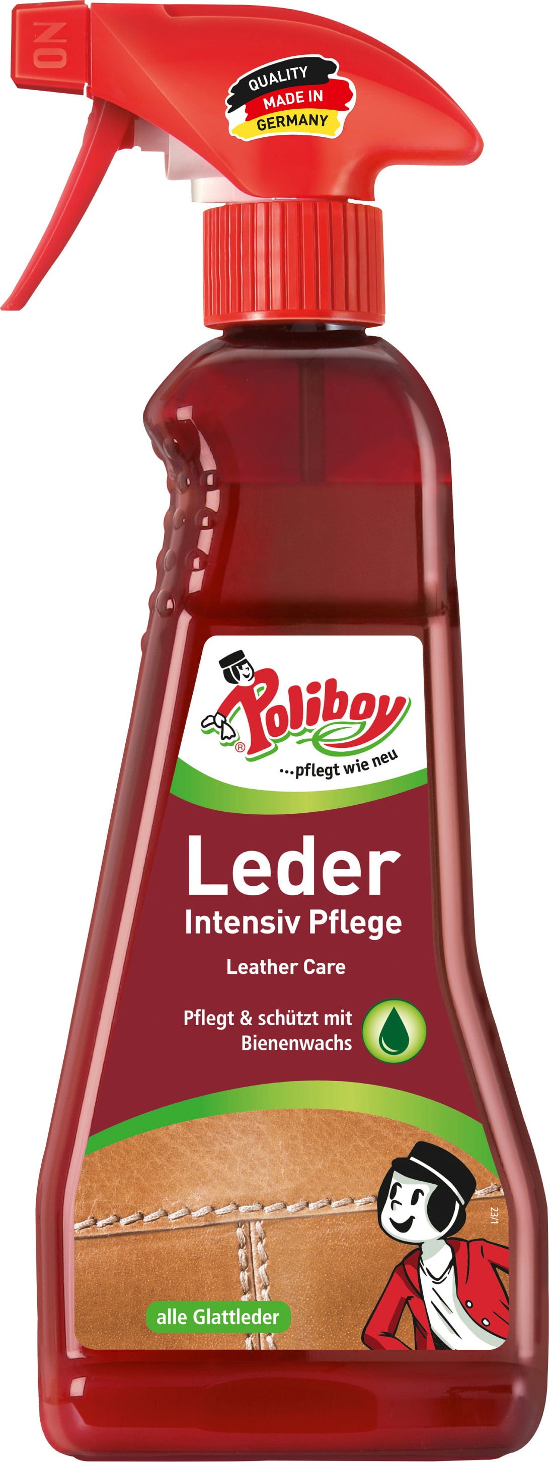 Läder Intensivvård från Poliboy passar för äkta läder i alla färger. Den kan användas för vård och skydd av möbler, väskor, skor samt rid- och motorcykeltillbehör. Formulan innehåller äkta bivax och växtvax, impregnerar lädret och gör det motståndskraftigt och smidigt. Samtidigt fräschas färgen upp på ett fint sätt.