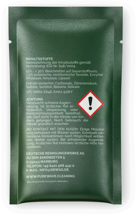| Tillverkare: | Deutsche Reinigungswerke AG , Zu den Sandbeeten 5 , 35043, Marburg, Tyskland, info@drwag.de |