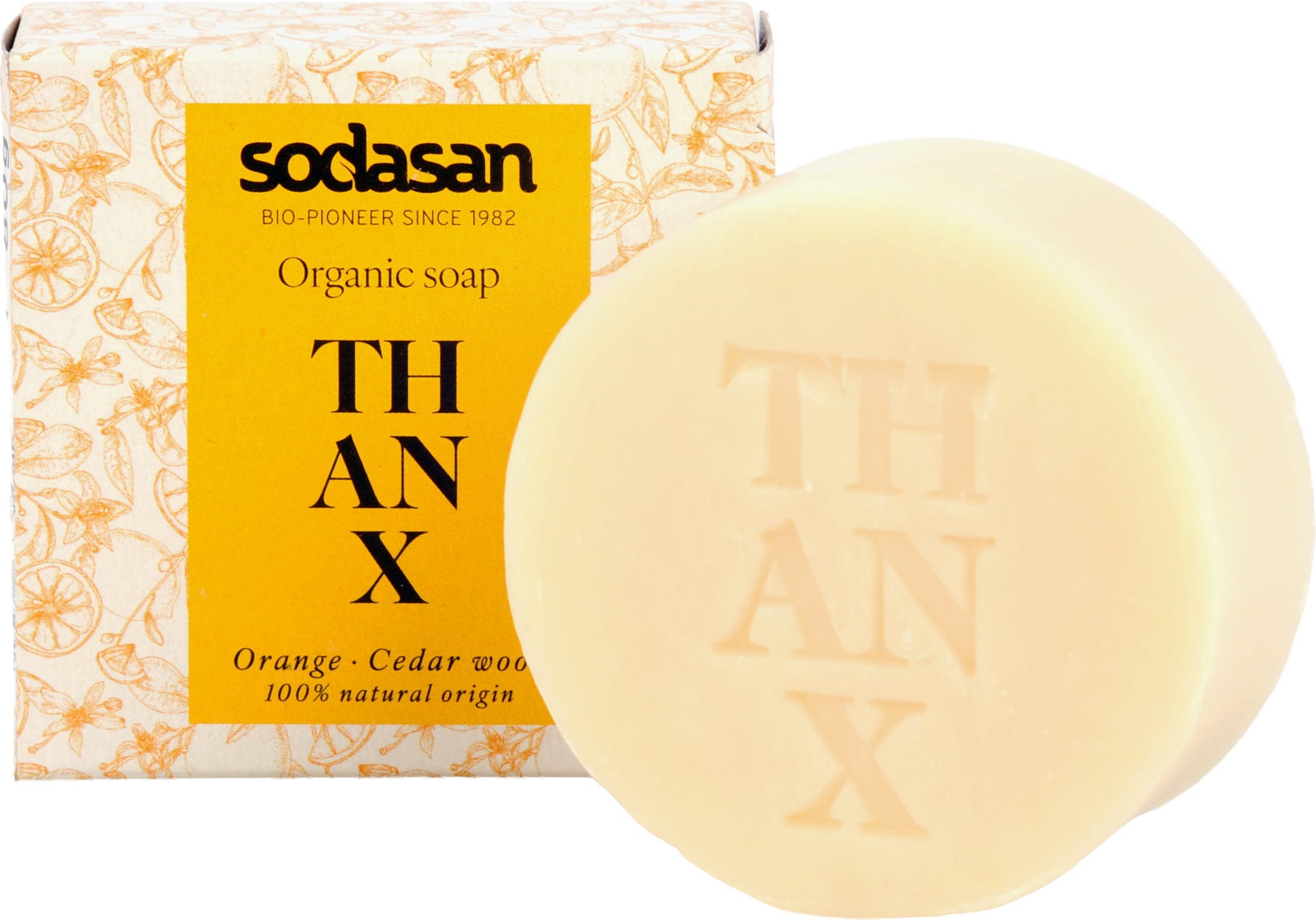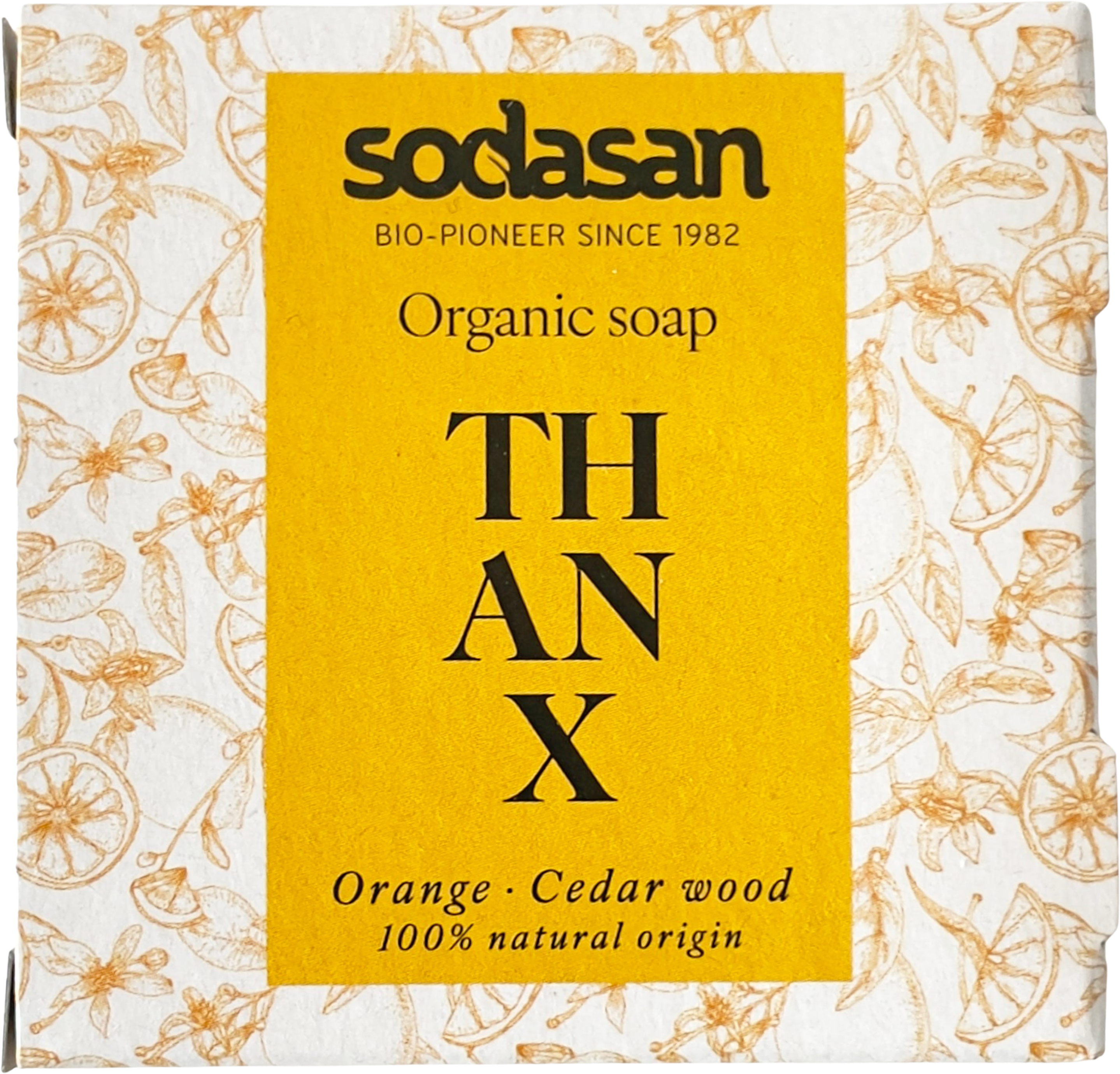 Med presenttvålen THANX från sodasan ger du bort en känsla av ren trygghet och säger tack på ett extra fint sätt! Denna högkvalitativa växtoljetvål omsluter dig med en varm, solig doft som påminner om en sommardag och ger en mjuk och behaglig hudkänsla tack vare basen av ekologisk sheasmör.